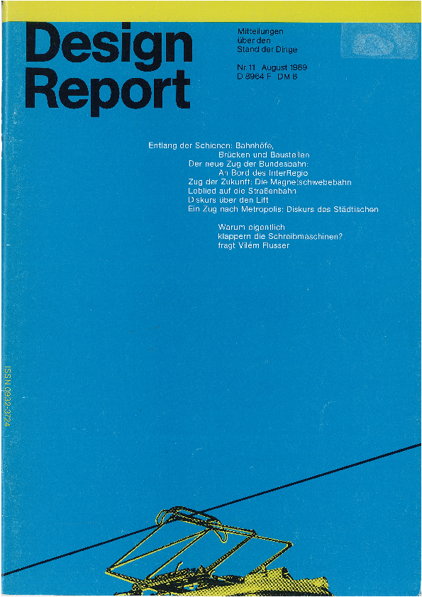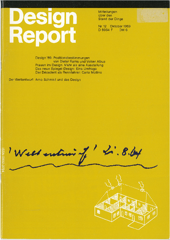 Die Zeitschrift erschien nun mit der Unterzeile „Mitteilungen über den Stand der Dinge“. Jene späten 1980er Jahre waren eine Zeit des Aufbruchs für Design, das damals für Individualität und Variantenreichtum stand. Design Report war ein Forum, das Akteure im Design miteinander ins Gespräch brachte, dabei disziplinäre Grenzen von Gestaltung überwindend. Die Zeitschrift war kein Spiegel der Szenerie jener Jahre. Statt bunte Bilder zum Betrachten gab es Texte und Statements zum Lesen.