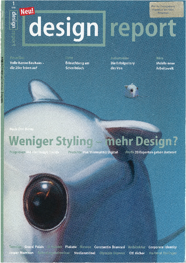 Der Design Report erschien erstmals 1987 und zuletzt im Februar 2019. Anschließend wurden seine Themen und sein Anspruch in neuer Form fortgeführt – zunächst online auf der Plattform ndion, und heute hier auf Design Perspectives sowie im dazugehörigen Podcast. Mit Design Perspectives führen wir den Gedanken des Design Report weiter: als Ort für fundierte Einblicke, Debatten und Perspektiven zu Design, Marke und Innovation – aktuell, digital und international vernetzt.