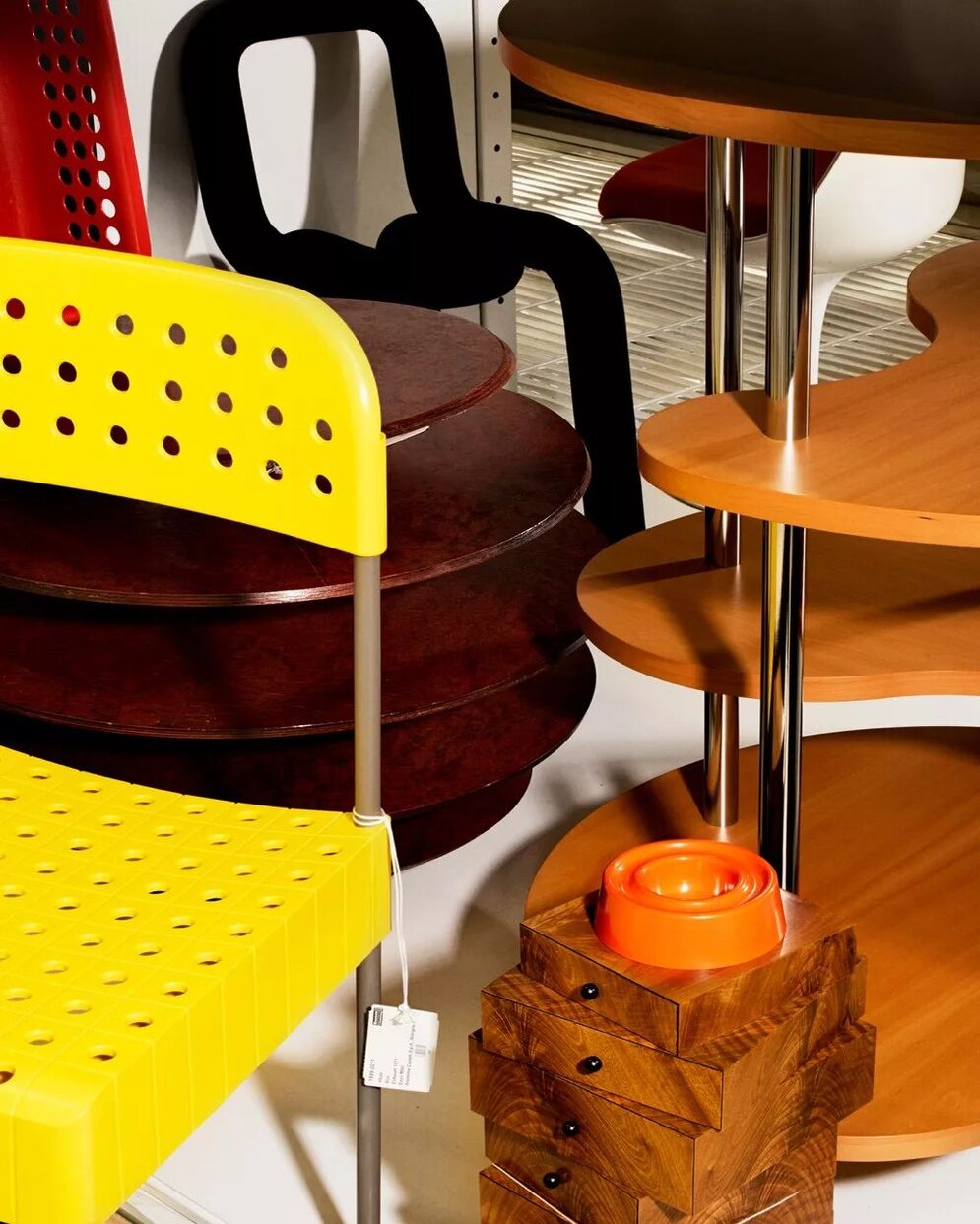 Hier im Archiv läuft man quasi durch die Designgeschichte. Ein Skywalk, ein transparenter Brückenbau, führt durch das Schaudepot, das Licht inszeniert jeweils dort die Objekte, wo man gerade steht. Hier konnte ich mich austoben. Man findet hier den Ur-Hocker von Max Bill, der die Kratzspuren seiner Katze zeigt. Man kann Archetypen des Sitzens bestaunen. Der „Grand Confort“ -Sessel von Charlotte Perriand und Le Corbusier trifft auf den „Sans Confort“ von Stefan Zwicky aus Beton, eine brutalistische Persiflage des legendären Vorbilds. Und man kann sehen, wie beispielsweise organische Formen sowohl Verner Pantons Freischwingern wie auch den Strandstuhl von Willy Guhl prägen. Zudem lassen sich Schätze entdecken wie die Haute-Couture-Kleider des weltberühmten Modeschöpfers Cristóbal Balenciaga oder die zauberhaften Marionetten von Sophie Taeuber-Arp.