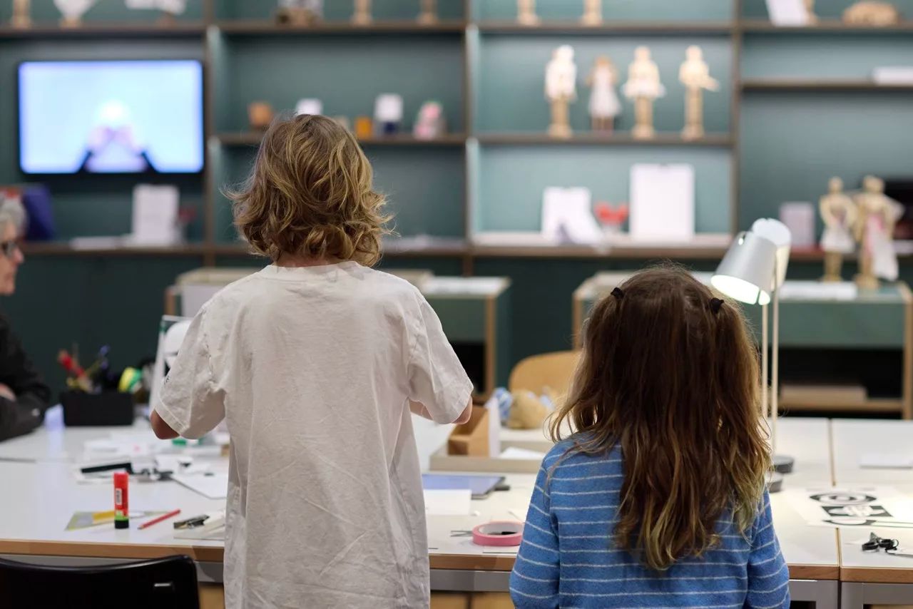 Teil der Dauerausstellung ist auch das sogenannte Studio. Hier ist das Publikum gefragt. Es kann in diesem Workshopbereich selbst gestalten, Design ausprobieren, Wissen vertiefen, sich austauschen oder einfach entspannen. Wir starten zum Jubiläumsjahr mit Papier – Besucher können Stühle falten, auch Paper Fashion ist ein grosses Thema. Mich begeistert das, wie hier täglich in grosser Konzentration und mit viel Spass neue Arbeiten entstehen, die wir dann auch hier ausstellen. Eine echte Bereicherung!