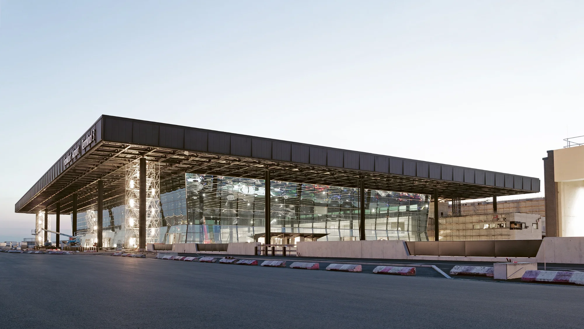 Für Flughafenneubauten wird heute meist das sogenannte Pier-Design gewählt. Von einem zentralen Bereich, der Check-in-Halle, Sicherheitskontrollen und Shopping-Zonen aufnimmt, gehen dabei langgestreckte Anbauten ab, in denen sich die Gates befinden. Zur nachträglichen Erweiterung können zusätzliche Piers ergänzt oder bestehende verlängert werden. Ist dies nicht möglich, entstehen in der Regel freistehende Satelliten, die unterirdisch über Fußgängertunnel oder Peoplemover erschlossen werden. Für das neue Terminal 3 des Frankfurter Flughafens entschieden sich Christoph Mäckler Architekten ebenfalls für das Pier-Design. An die große Haupthalle mit angeschlossenem Retailbereich schließen sich radial drei Piers mit insgesamt 33 Gates an. Mögliche Erweiterungen sind bereits mitgedacht: Ein Pier kann verlängert, ein weiterer neu gebaut werden. In der letzten Ausbaustufe können im Terminal 3 jährlich bis zu 25 Millionen Passagiere abgefertigt werden.