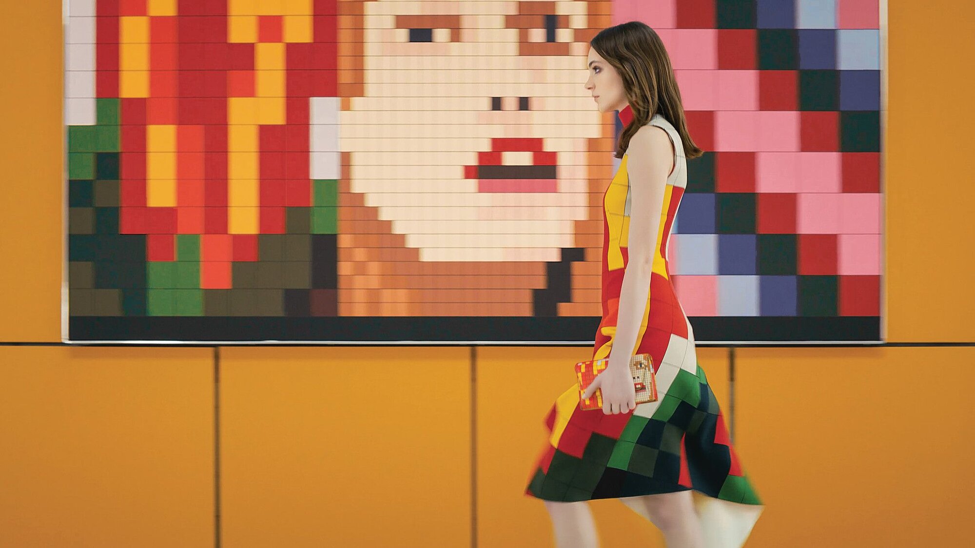 In Zürich kann man auch bestaunen, wie Kriemler den 3-D-Effekt in Ruffs Werken zur Marsoberfläche auf federleichte Regenmäntel brachte. Mit Ruff verbindet Kriemler eine jahrelange Freundschaft, ebenso wie mit Imi Knoebel. Dessen grossformatige Aluminiumbilder von kraftvoller Farbigkeit widerspiegeln sich in Akris Frühjahr/Sommer-Kollektion 2021. Aber auch weniger beachtete Künstlerinnen stehen Pate bei Akris: An der Documenta 2017 in Athen entdeckte Kriemler „Linia“, eine fünfteilige Serie aus geometrischen Collagen der rumänischen Künstlerin Geta Brătescu. Nicht nur der ungewöhnliche Rosaton war ihm aufgefallen, sondern auch, dass die schwarzen Linien, die Brătescu damit kombiniert hatte, nicht gezeichnet, sondern geklebt waren. Das popartige Selbstporträt der Avantgardistin ziert nun nicht nur den Firmensitz von Akris, sondern wurde auch für die Frühjahr-/Sommer-Kollektion 2019 in einen Strickponcho übersetzt – eine bestechende Übersetzung des Witzes und Charmes der Künstlerin in etwas Tragbares.
