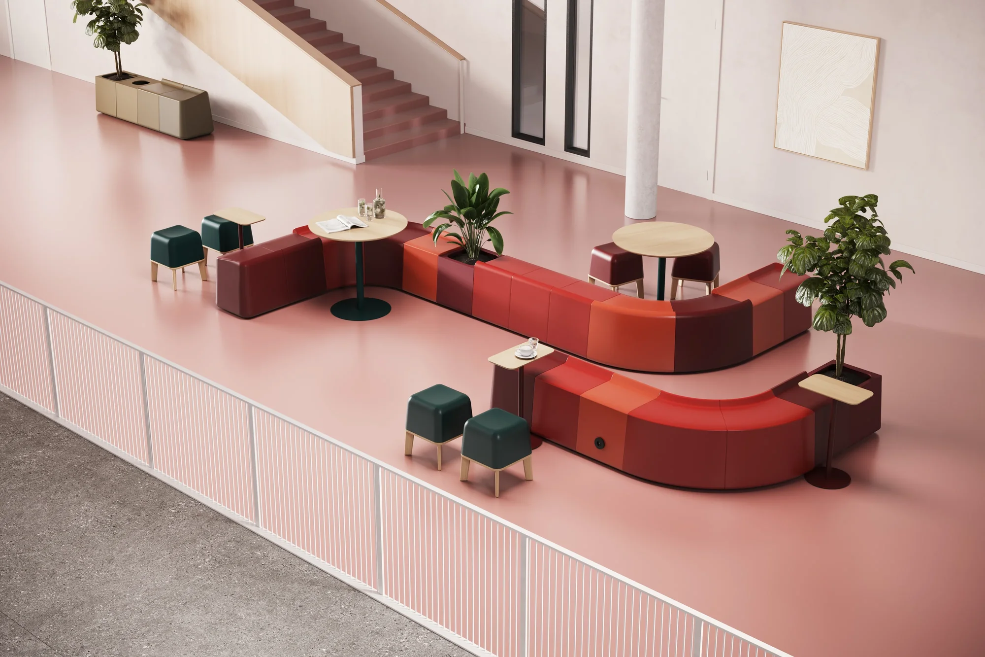 Die sanft abgerundeten Möbel und Module von Bõln verstehen sich als progressive Antwort auf heutige Bedürfnisse moderner, gemeinschaftlich genutzter Umgebungen. Sie fügen sich sowohl in lockere, informelle Bereiche als auch in anspruchsvolle, architektonische Räume ein. Jedes Setting kann individuell und jederzeit neu gestaltet werden. Durch zahlreiche Farboptionen und Zubehör wie Paneele, Tische und Arbeitsstationen. Die vielseitigen Dimensionen der Bõln-Möbel kommen in einer Kollektion des schwedischen Designers Mattias Stenberg zum Ausdruck: Die Elemente seiner farbstarken VISTAS Kollektion sind so konzipiert, dass sie eine Vielzahl von Sitzstrukturen und -anordnungen ergeben – freistehend, in Reihen oder im 360°-Arrangement. Die Module können dazu auf dem Boden, schlanken Beinen oder einer Plattform platziert werden. Durch diese Optionen lassen sich lockere und fluide oder skulptural und beständige Erscheinungsbilder kreieren.