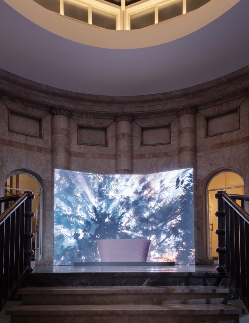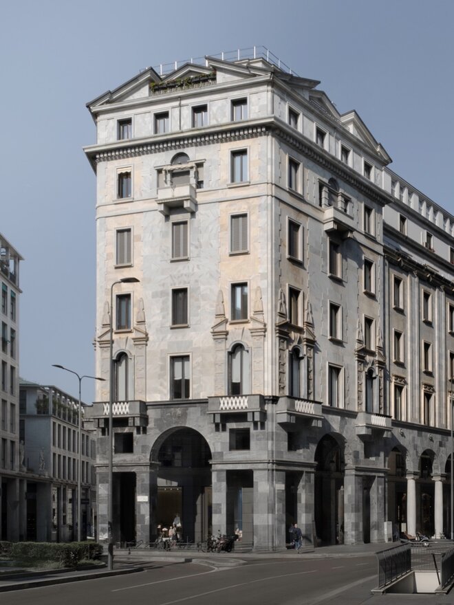 Portaluppi versuchte in seiner Architektur, moderne und historische Elemente miteinander zu verbinden und zu versöhnen. Anders als die radikale Avantgarde seiner Zeit wollte er keinen vollständigen Bruch mit dem Vorangegangenen. Der Palazzo Crespi, den Portaluppi zwischen 1928 und 1932 erbaute, ein stattliches Geschäftshaus im Mailänder Zentrum, illustriert das Ziel des Architekten, einen modernen Stil zu schaffen, der zugleich in der Geschichte wurzelt. Im Innern schuf der Architekt eine gewaltige, mit Halbsäulen umstandene Rotunde als Empfangshalle, von der eine palastartige zweiarmige Treppe ins Untergeschoss führt. Diese beeindruckenden Raumerfindung Portaluppis bildet den Rahmen für die Installation „Bubbles of Time“ von Parasite 2.0 und Kaldewei.