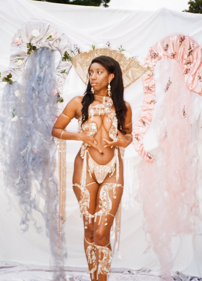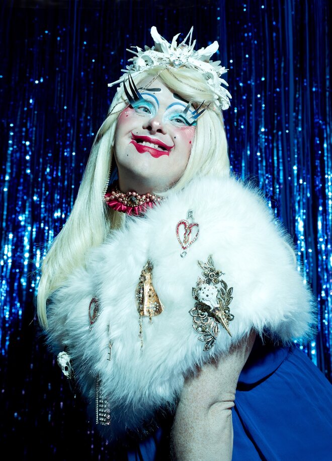 Die erste Sektion Visibility zeigt, wie sich Disabled Artists über Mode, Fotografie und Grafikdesign selbst inszenieren. Zu sehen sind unter anderem ein adaptives Karnevalskostüm von Maya Scarlette, Porträts von Marvel Harris und Davina Starr sowie das „Reframing Fashion“-Cover der britischen Vogue mit Sinéad Burke und Aaron Rose Philip. Auch Zines wie das „Able Zine” und das„Bed Zine” oder die typografische Arbeit von Conor Foran für das „Dysfluent Magazine” verdeutlichen, wie Sprache und Bild zur Repräsentation beitragen.