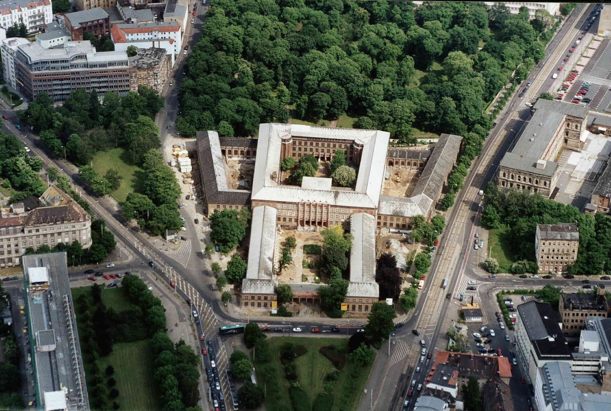 Mit welcher Verve und wie zukunftsweisend sich die Gestaltung in der Moderne entfaltet und sich von ihren handwerklichen Wurzeln gelöst hat, zeigt sich auch in der Architektur des während der Weimarer Republik entstandenen Neubaus. Nicht nur zählt das zwischen 1925 und 1929 errichtete Haus zu den wenigen großen deutschen Museumsbauten der Weimarer Republik. Die vom damaligen Leipziger Stadtbaurat Hubert Ritter zusammen mit dem Architekturbüro Zweck und Voigt für das geschichtsträchtige Areal zwischen Altem Johannisfriedhof und Johannisplatz entworfene weitläufige Anlage lehnt sich im Grundriss einerseits an die Tradition des europäischen Schlossbaus an, verbindet in seiner Architektur aber eine funktionalistisch orientierte Formensprache mit expressiven Schmuckformen des Art déco. Weithin sichtbar ist die Dachbekrönung, die „goldene Ananas“. Herzstück sind die 1927 realisierte, den Raum zackenförmig dynamisierende Pfeilerhalle und die von der kühlen Rationalität des Bauhauses geprägten 18 hohen Glasfenster des Haupttreppenhauses, die Josef Albers 1926 entworfen hat. Anfang Dezember 1943 wurde der Museumskomplex durch Brand- und Sprengbomben schwer beschädigt. Zwar fanden schon ab 1949 wieder erste provisorische Ausstellungen statt, doch wurde zu DDR-Zeiten lediglich das Notwendigste zur Erhaltung des Gebäudes unternommen. Eine grundlegende Sanierung des Gebäudekomplexes (mit seinen Innenhöfen und dem angrenzenden parkähnlichen Alten Johannisfriedhof) erfolgte erst nach der Wende in den Jahren 2000 bis 2005. (Die Josef-Albers-Fenster wurden 2011 rekonstruiert.) Heute beherbergt das Haus – in der Verbindung einmalig in Deutschland – neben dem Grassi Museum für Angewandte Kunst auch das Grassi Museum für Völkerkunde und das Grassi Museum für Musikinstrumente der Universität Leipzig.