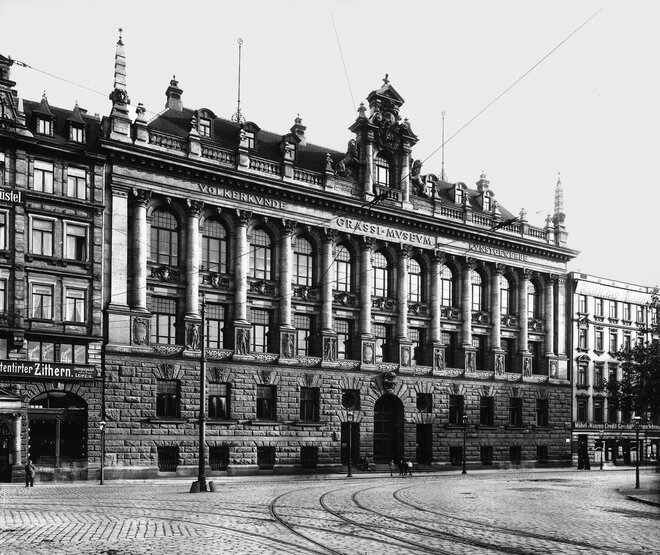 Begründet wurde das Haus 1874 als zweites Kunstgewerbemuseum Deutschlands (nach Berlin). Der Name Grassi Museum leitet sich von Franz Dominic Grassi (1801 bis 1880) ab, einem Leipziger Kaufmann italienischer Herkunft, der seiner Heinatstadt nach seinem Tod ein Vermögen von mehr als zwei Millionen Mark vermachte, mitdem zahlreiche Bauvorhaben, Parkanlagen und Denkmäler gefördert und realisiert wurden. So entstand zwischen 1892 und 1895 auch das alte, von Hugo Licht erbaute Grassi Museum, das ursprünglich das Museum für Völkerkunde und das Kunstgewerbemuseum beherbergte (Heute befindet sich in dem Gebäude die Leipziger Stadtbibliothek).