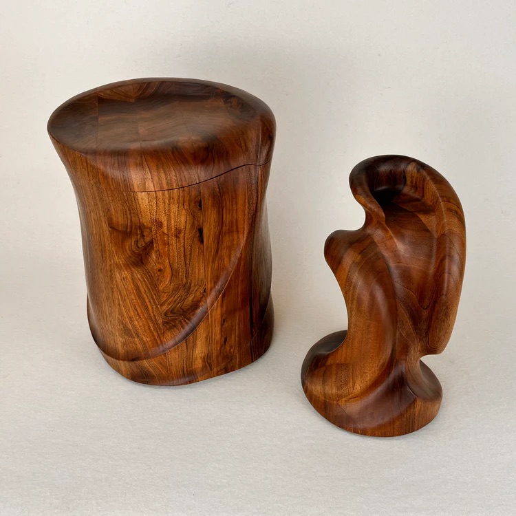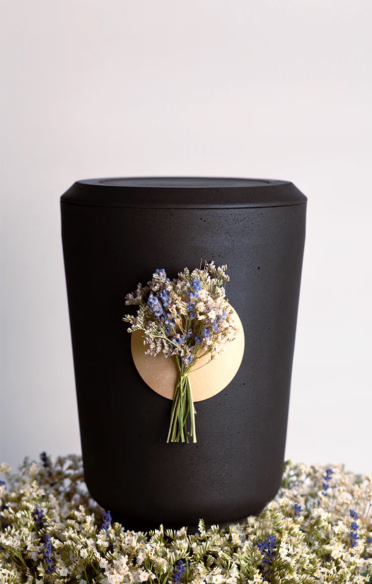 Im Zentrum steht für beide die Individualisierung: Die Modelle lassen sich beschriften, verzieren – oder sogar selbst zusammenbauen. So etwa das Modell „Zeit”, das als DIY-Kit angeboten wird. Nachhaltigkeit ist ebenso zentral: Das Papier stammt von Gmund und ist biologisch abbaubar, ebenso wie die Hanfbänder zum Herablassen der Urne. Mit ihrer Idee sind „Urnfold” nicht allein. Auch andere setzen auf naturnahe Materialien: Urnen aus Holz (Die Holzurne), Kohle (Kohleurne), Pilzmyzel (Loop) oder Dinkelspelz (Urnique) zeigen, wie vielfältig nachhaltiges Design fürs Danach sein kann.