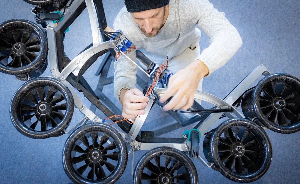 Ein Paradebeispiel: das Superbike der Lüfte von Tomasz Patan, Erfinder und Gründer von Volonaut. Sein futuristisches „Airbike” erinnert stark an die schwebenden Speeder aus „Star Wars“, auf denen Sturmtruppen einst durch die Wälder von Endor und endlose Canyons jagten. Doch Patan setzt nicht auf Drohnenpropeller, sondern auf Düsenantrieb – mit bis zu 200 km/h soll das Gerät eine einzelne Person durch die Lüfte befördern können.