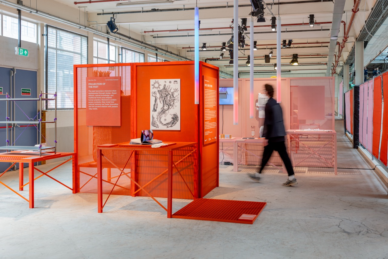 Richtig, bislang wurden wir für das Ausstellungsdesign beauftragt und haben dann mit den Kuratorinnen zusammengearbeitet. In diesem Jahr wurden wir gefragt, ob wir nicht selbst die Auswahl der Absolventinnen übernehmen möchten. Das haben wir natürlich sehr gerne gemacht. Unter dem Titel „Next, Now, Then“ heben wir hervor, wie unterschiedlich sich die Studierenden in ihren Arbeiten orientieren: Manche blicken in die Vergangenheit, um sich zu inspirieren, andere widmen sich der gegenwärtigen Frage, wie künstliche Intelligenz gestalterisches Schaffen beeinflusst. Wieder andere wagen einen Blick noch weiter in die Zukunft.