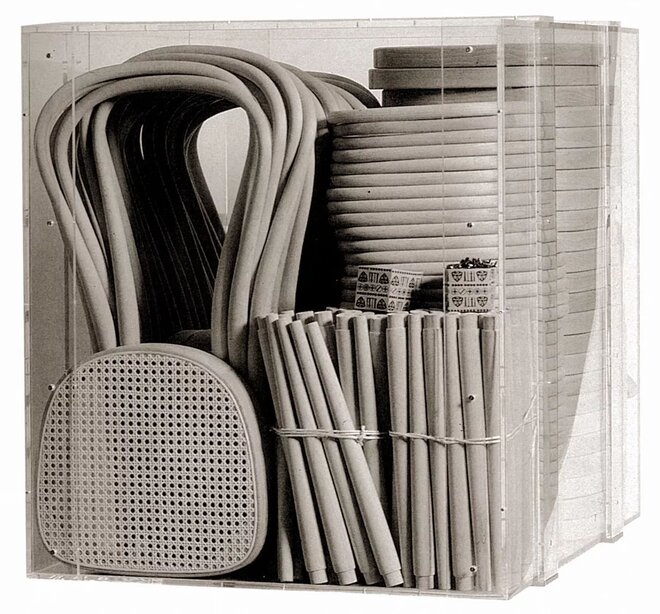 Die Möglichkeit, den Stuhl Nr. 14 in seine Einzelteile zu zerlegen, war ein zentraler Bestandteil seines Erfolgs. Bis zu 36 Stühle konnten in einer einzigen Kiste mit einem Volumen von einem Kubikmeter transportiert werden. Diese platzsparende Verpackung senkte die Transportkosten erheblich und ermöglichte einen globalen Vertrieb – was den Nr. 14 nicht nur wirtschaftlich attraktiv machte, sondern auch zu einem Symbol für Effizienz und Nachhaltigkeit.