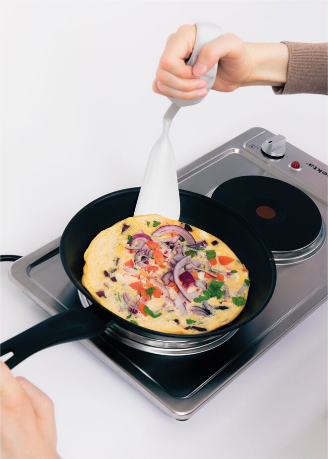 COOK/ABILITY von Marie Kurstjens geht nochmals darüber hinaus und bietet eine individualisierbare Serie von Küchengeräten: Schneidemesser, Rührer und Spachtel, deren Griff sich anpassen und austauschen lässt. Per App werden Griff und Küchenwerkzeuge kombiniert. Die Ziele sind vielfältig: bessere Erreichbarkeit, größere Selbständigkeit und mehr Inklusion. Dass dies nicht nur körperliche Funktionsstörungen umfasst, liegt auf der Hand.