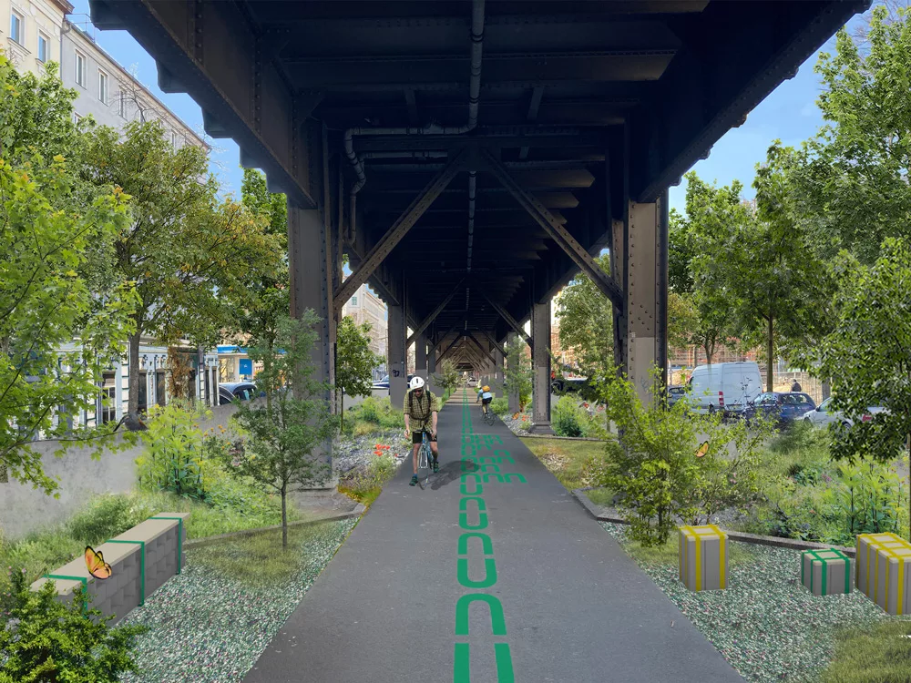 In Berlin wird derweil die Umsetzung eines langersehnten Projekts geplant: Die Radbahn unter der U1 in Kreuzberg. Unter und entlang des Bahnviadukts soll mittelfristig ein rund zwei Kilometer langer Radweg vom Kottbusser Tor bis zur Oberbaumbrücke verlaufen und später in Richtung Westen bis zum Bahnhof Zoo um noch einmal sechs Kilometer verlängert werden. Bisher wird der Raum auf dem ersten Teilstück zumeist als Parkfläche genutzt. Die freien Flächen neben dem Radweg sollen von den Bürgen mitgestaltet werden. Dazu soll zwischen den U-Bahnhöfen Kottbusser Tor und Görlitzer Bahnhof ein 200 Meter langes Testfeld entstehen, um diesen Stadtraum mit neuem Leben zu füllen.