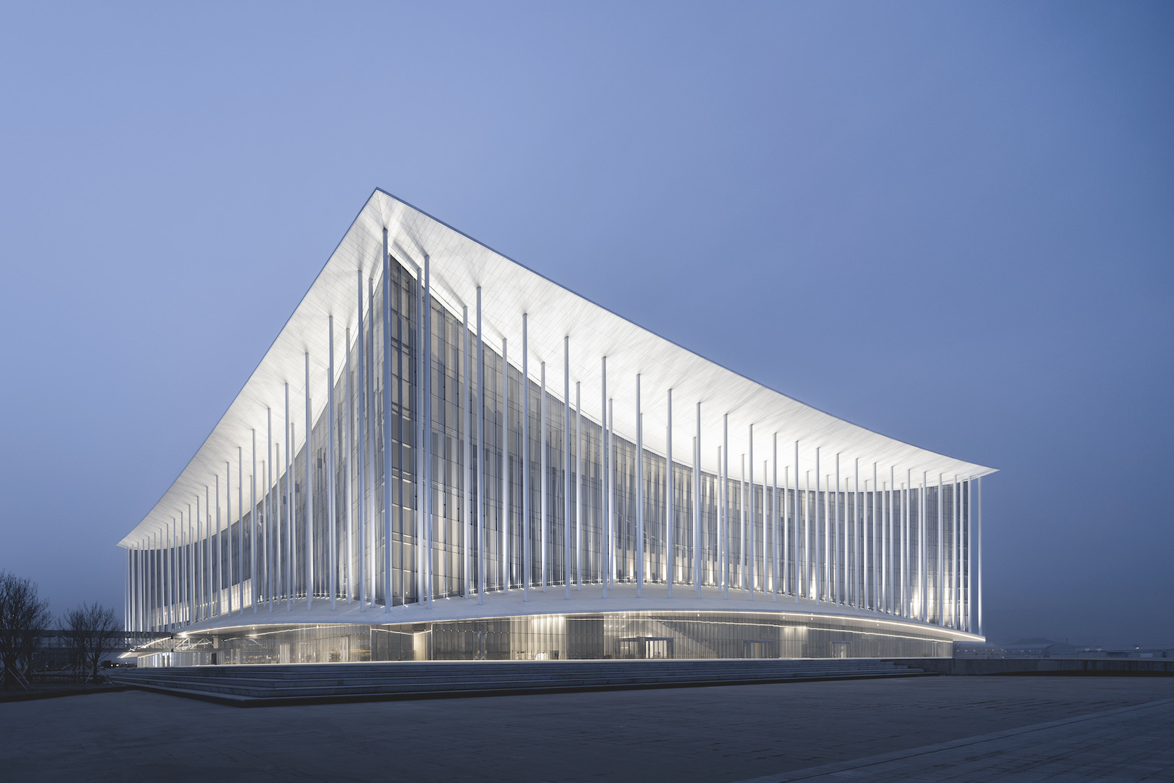 Magdalene Weiss: (lacht) Die beiden Projekte sind tatsächlich von unserem Team in Schanghai entworfen worden. Beide Projekte sind aber außerdem öffentliche Gebäude und sie sind beide sehr großmaßstäblich. Beide Projekte sollen identitätsstiftend sein und eine Wirkung im Stadtraum erzielen. Insofern waren beides Bauaufgaben, bei denen wir nach ausdrucksstarken Lösungen gesucht haben. Und in beiden Fällen sind es geometrische Elemente mit klaren konstruktiven Prinzipien, die die Großform bilden und die den Ausdruck der Architektur ergeben.