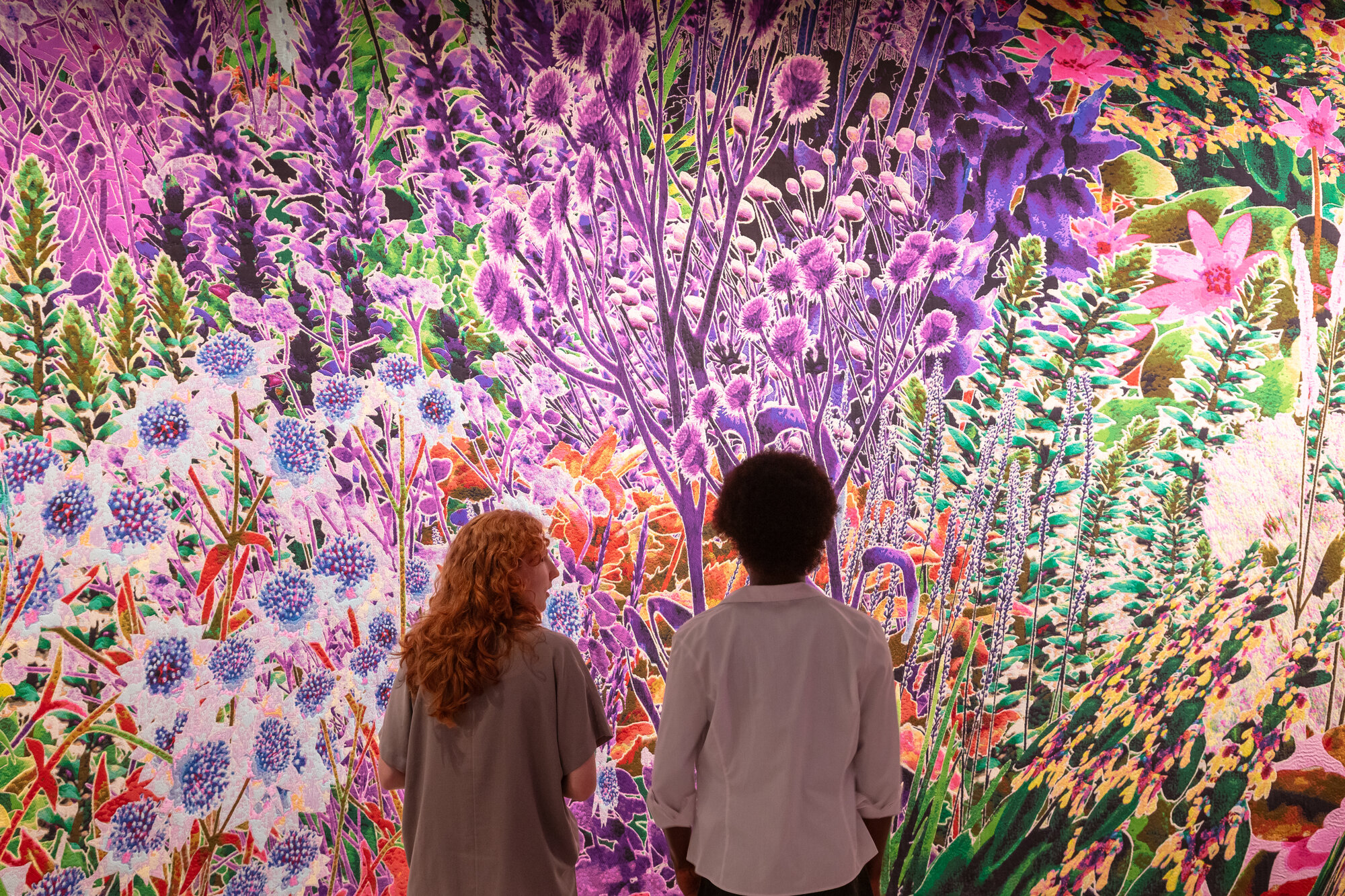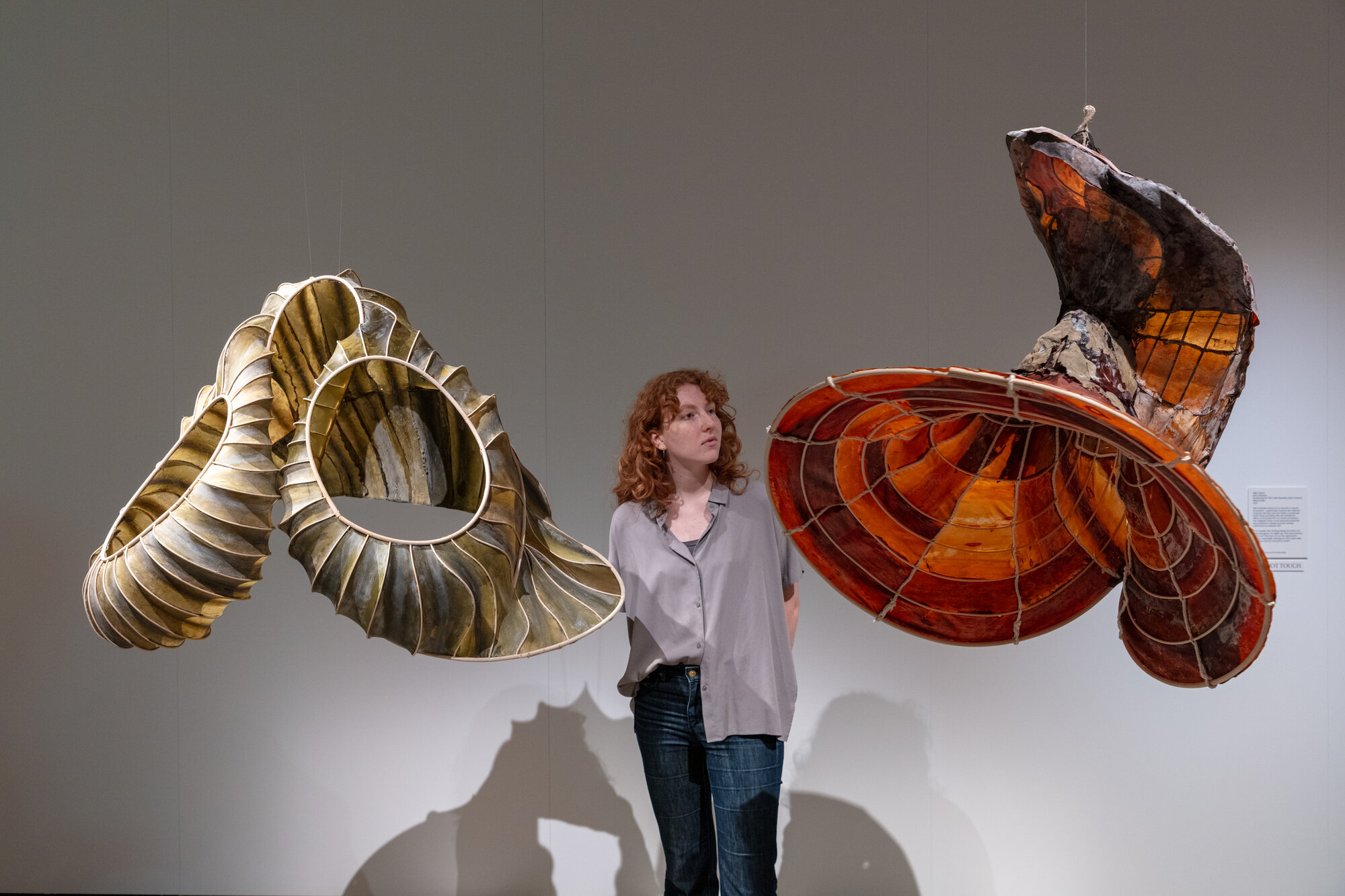 Im dritten Teil, „Shifting Perspective“, steht die Sicht der nicht-menschlichen Welt im Mittelpunkt. Hierzu zählen Alexandra Daisy Ginsbergs monumentale Tapisserie „Pollinator Pathmaker: Perceptual Field“ und Julia Lohmanns raumgreifende Algeninstallation „Kelp Council“, fünf organische Meereswesen, die wie in einer Unterwasserkonferenz über den Zustand der Ozeane beraten.