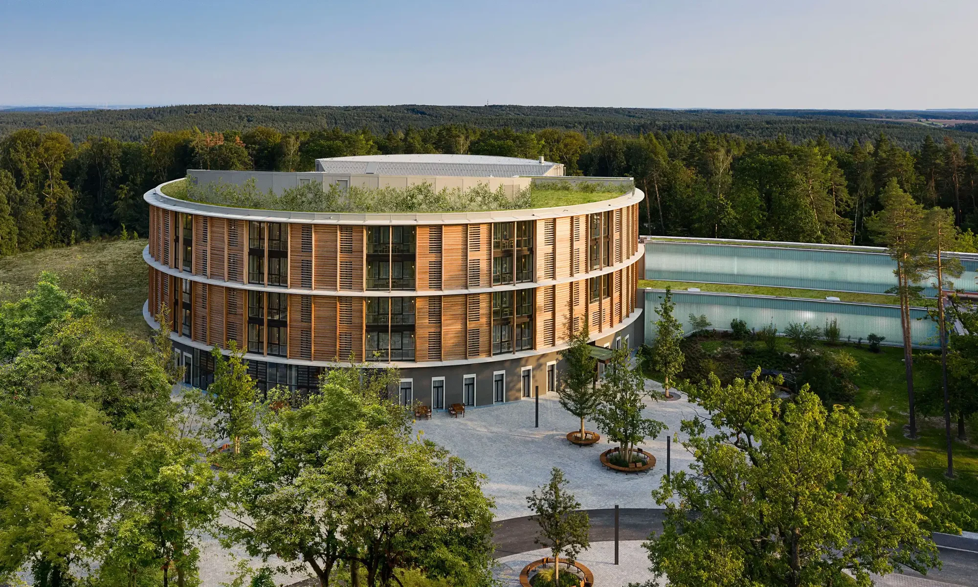 Der Italienische Designer und Architekt Matteo Thun stellt dies mit der Waldkliniken Eisenberg eindrucksvoll unter Beweis. Biophiles Design wird hier zum elementarten Bestandteil des „Healing Environments“ der Klinik — von der Bau-Ästhetik und Organisationsstruktur des Gebäudes bis zur der Zimmereinrichtung und der Gestaltung der Übergänge zwischen Innen- und Außenraum. Das Projekt wurde 2020 als Deutschlands bestes Krankenhaus und mit mehreren Architekturpreisen ausgezeichnet. Bei Thuns neustem Entwurf für eine Seniorenresidenz in Ambach finden sich ähnliche Ansätze wieder, die sich bereits in Eisenberg bewiesen haben. Ein weiteres Beispiel ist das Maggie's Cancer Care Centre in Manchester von Foster + Partners. Das Gesundheitscenter verfügt über einen Innenhofgarten und Grünflächen sowie lichtdurchflutete Innenräume, in denen natürliche Materialien wie Pflanzen und Holz prominent integriert werden. Der Blick wird immer wieder nach draußen in die Gärten geleitet, wodurch das Design eine ruhige und heilende Umgebung für Patienten und Angehörige schafft.