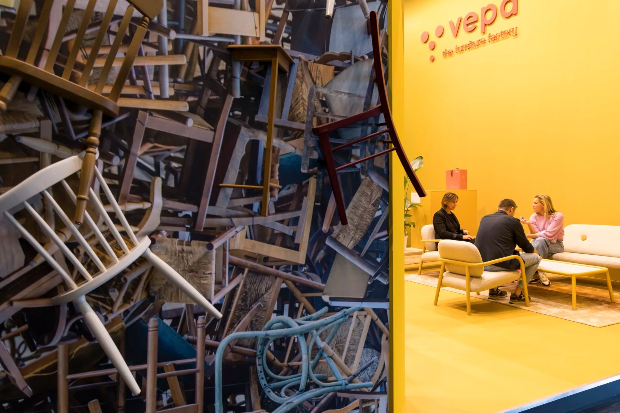 Angesichts der schieren Masse an konventionellen Neuheiten auf der Orgatec wirken solche an sich positiven Initiativen jedoch irgendwie hilflos. Denn das reicht alles bei weitem nicht aus, um die auf den Absatz von möglichst vielen neuen Produkten gepolte Branche Richtung Kreislaufwirtschaft umzubauen. In den Niederlanden ist man wie so oft schon weiter: Am Stand von Vepa konnten die Besucher:innen nicht nur Möbel aus recycelten oder biobasierten Materialien testen. Wie einige andere Unternehmen auch setzt Vepa darauf, bereits genutztes Mobiliar zu überarbeiten und wiederzuverwenden. Dabei beschränkt man sich aber nicht auf eigene Produkte, sondern setzt in der eigenen Fertigung auch Möbel anderer Hersteller instand. Laut Vepa sind die runderneuerten Stücke günstiger als Neuware, so dass die Wende zum kreislaufgerechten Wirtschaften von einem funktionierenden Geschäftsmodell getragen wird. Wenn man diesen Ansatz auf die ganze Branche skalierte, dann sähe eine Messe wie die Orgatec in einigen Jahren radikal anders aus. Es gäbe viel weniger Produktneuheiten, dafür würden viel mehr Dienstleistungen und Services rund um das vorhandene Mobiliar angeboten. Wenn es dafür überhaupt noch eine Messe dieser Größenordnung bräuchte.