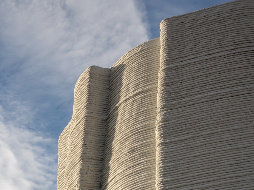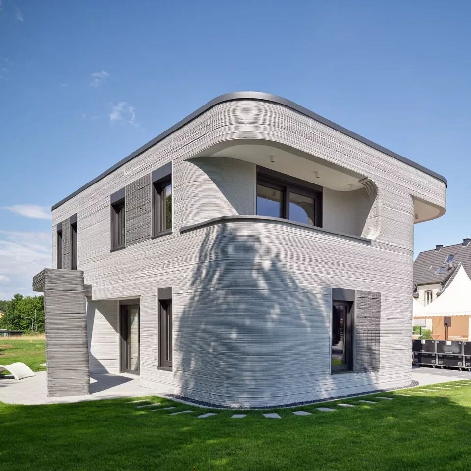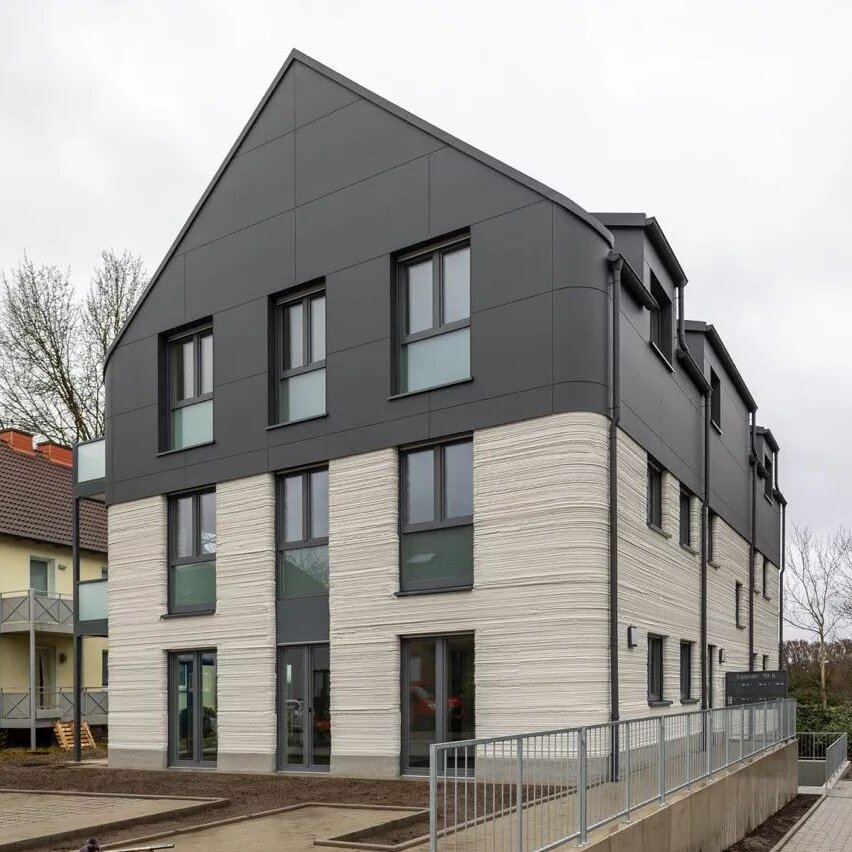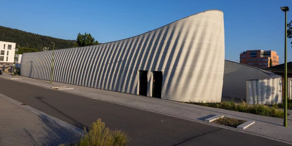 Das 3D-gedruckte Rechenzentrum für die Heidelberg iT Management GmbH (2023) gilt als eines der größten 3D-gedruckten Gebäude Europas: Der Rohbau des rund 50 Meter langen, eingeschossigen Gebäudes entstand in nur 170 Stunden. Durch die digitale Steuerung und die direkte Vor-Ort-Fertigung entfielen viele klassische Baustellenschritte wie Schalungsbau oder aufwendige manuelle Tätigkeiten. Gleichzeitig wurde weniger Material benötigt, da der Beton passgenau Schicht für Schicht extrudiert wurde. Das Projekt demonstriert das Potenzial des 3D-Drucks für funktionale, mittelgroße Gebäude mit individueller Formensprache – zeigt jedoch auch aktuelle Grenzen auf: Die Wellenstruktur des Baukörpers stellte hohe Anforderungen an die Dachkonstruktion, zugelassene Fenster für den neuartigen Druckbeton fehlten, und die Gesamtfertigstellung zog sich trotz schnellem Rohbau über zehn Monate hin. Auch die großen Dimensionen der Druckanlagen erschweren bisher den innerstädtischen Einsatz.