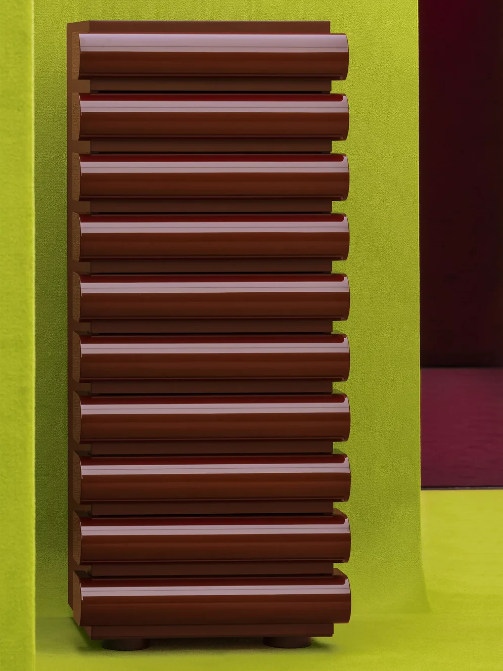 Trotz der schwierigen wirtschaftlichen Lage hat sich eine Entwicklung der vergangenen Jahre fortgesetzt: Branchenfremde Unternehmen, häufig aus dem Luxussegment, nutzen den Salone als Plattform für Marketing und Markenbildung. Gucci beispielsweise zeigte italienische Designklassiker wie Mario Bellinis „Le Mura“-Sofa oder Nanda Vigos Kommode „Storet“ in der neuen Hausfarbe Weinrot („Rosso Ancora“) vor giftgrünem Hintergrund – very instagramable! Saint Laurent wiederum stellte in einer raumgreifenden Installation zwölf handbemalte Porzellanteller nach Entwürfen von Gio Ponti vor. So viele Modemarken waren da, dass das Magazin „Wallpaper“ vorab die besten „Fashion Moments“ des Salone auflisten konnte.