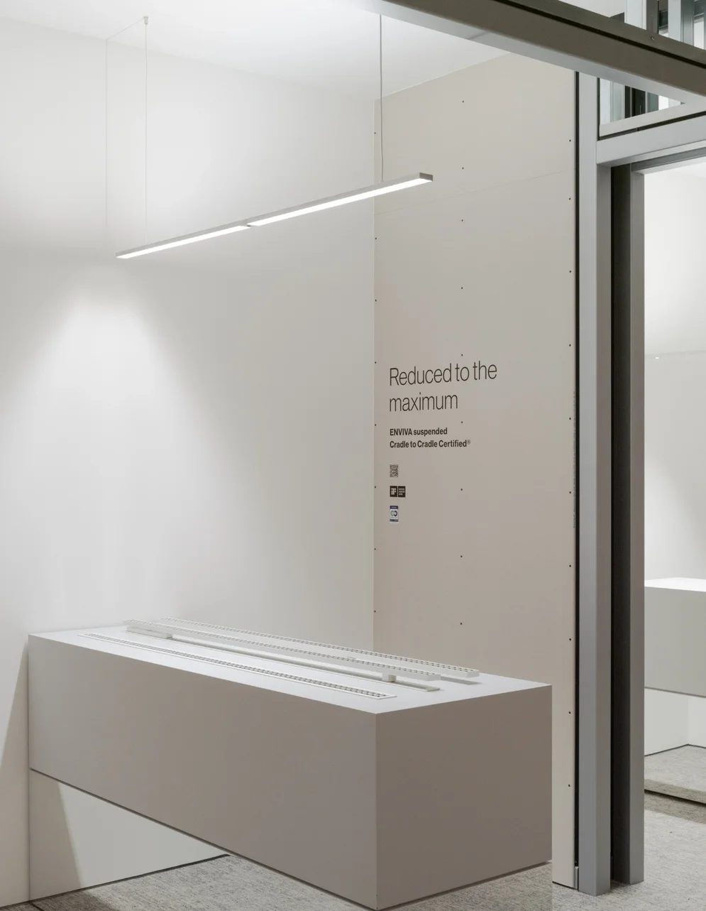 Die Leuchte „Enviva“ von XAL steht exemplarisch für diesen Ansatz. Sie ist zerlegbar konstruiert, kommt ohne Klebeverbindungen aus und lässt sich vollständig in ihre Bestandteile zurückführen. Auch der Remanufacturing-Service von Zumtobel zeigt, wie sich Produkte über mehrere Lebenszyklen hinweg weiterentwickeln lassen. Bestehende Leuchten werden dabei nicht entsorgt, sondern industriell aufbereitet, aktualisiert und erneut eingesetzt. Systeme wie „Solena“ machen darüber hinaus ihre technische Struktur sichtbar. Konstruktion und Befestigung werden nicht verborgen, sondern offengelegt. Hier entsteht eine Ästhetik, die sich aus der Konstruktion selbst ergibt.