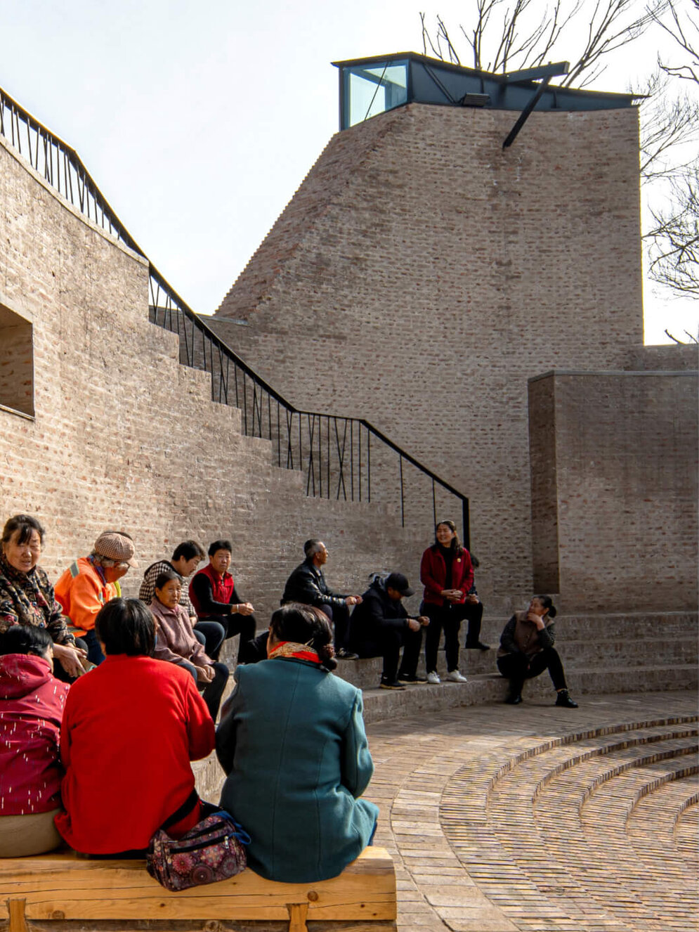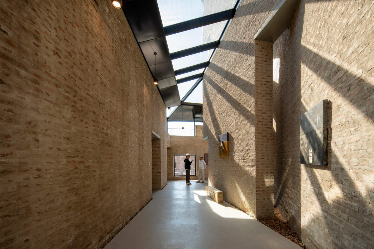 Zhang Pengju: Das Projekt entstand aus dem Bedürfnis des Dorfes West Wusutu, einen Ort der Gemeinschaftzu schaffen. Vor einigen Jahrzehnten besaß das Dorf noch solche Versammlungsorte, doch sie verschwanden mit der Zeit. Daneben sollte das Zentrum auch Ausstellungsräume für die lokalen Künstler*innen aufnehmen. Schließlich umfasste das Raumprogramm auch noch Gewerbeflächen. Sie sind gedacht für junge Menschen, die in das Dorf zurückkehren wollen, um dort Unternehmen aufzubauen. Im Hinblick auf eine Wiederbelebung des Dorfes sind solche Angebote sehr wichtig. Aber das neue Gebäude sollte auch dynamisch konzipiert sein, um auf zukünftige Veränderungen reagieren zu können. All diese unterschiedlichen Anforderungen und Funktionen in einem relativ kleinen Bauwerk unterzubringen und sinnvoll miteinander zu verknüpfen – das war die größte Herausforderung.