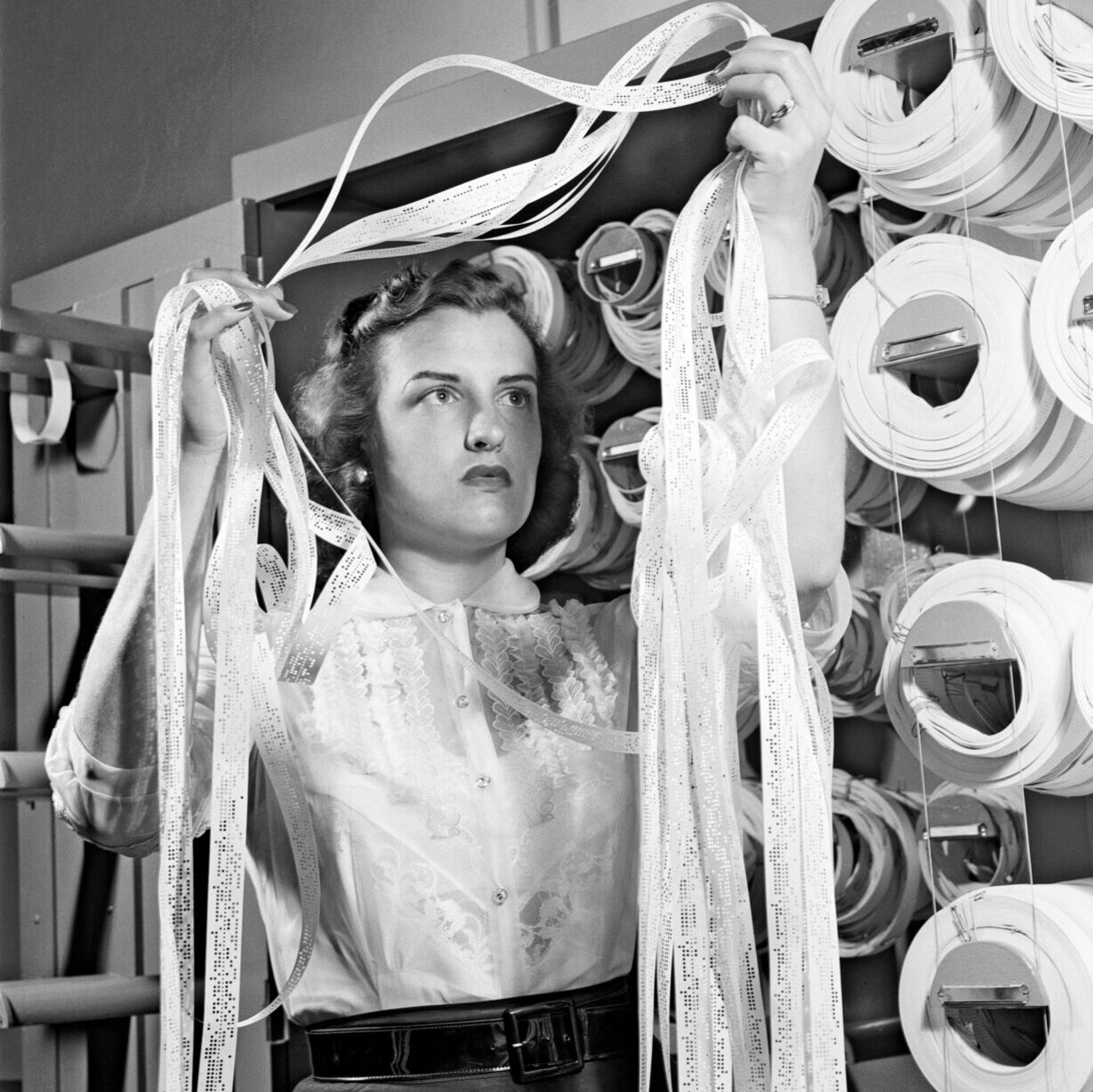 Nun ist die Geschichte des Computers keineswegs die Geschichte nur eines Gerätes oder besser gesagt: der Hardware. Jede technologische Entwicklung hatte und hat auch immer einen Einfluss auf unseren Alltag, auf die Kultur, in diesem Fall auf Fotografie und Film, auf die Werbung, die visuelle Kommunikation und andere Bereiche mehr. So ist es großartig, dass den Geräten der jeweiligen Zeit auch „Zeugnisse der Auswirkungen“ an die Seite gestellt werden: Zeitschriftencover, Werbeanzeigen, Kinoplakate, Film-Stills, Kunstwerke oder Fotografien aus Unternehmen und Büros, die Männer und Frauen bei der Arbeit am Computer zeigen. Eine Szene aus Fritz Langs Stummfilm „Metropolis“ gehört ebenso in diese Reihe wie ein Cover von 1955 des „Time“-Magazine mit Thomas J. Watson Jr. von IBM auf dem Cover. Eine Anzeige des amerikanischen Unternehmens RCA (Radio Corporation of America) aus dem Jahr 1964 zeigt das Interieur eines Pkw samt Instrumententafel, vollgepackt mit elektronischen Geräten und dem Slogan „How RCA Transistors will run your „Electronic“ Car of Tomorrow“. Auch das legendäre, 1981 von Paul Rand gestaltete Poster für IBM – „Eye Bee M“ – fehlt nicht.