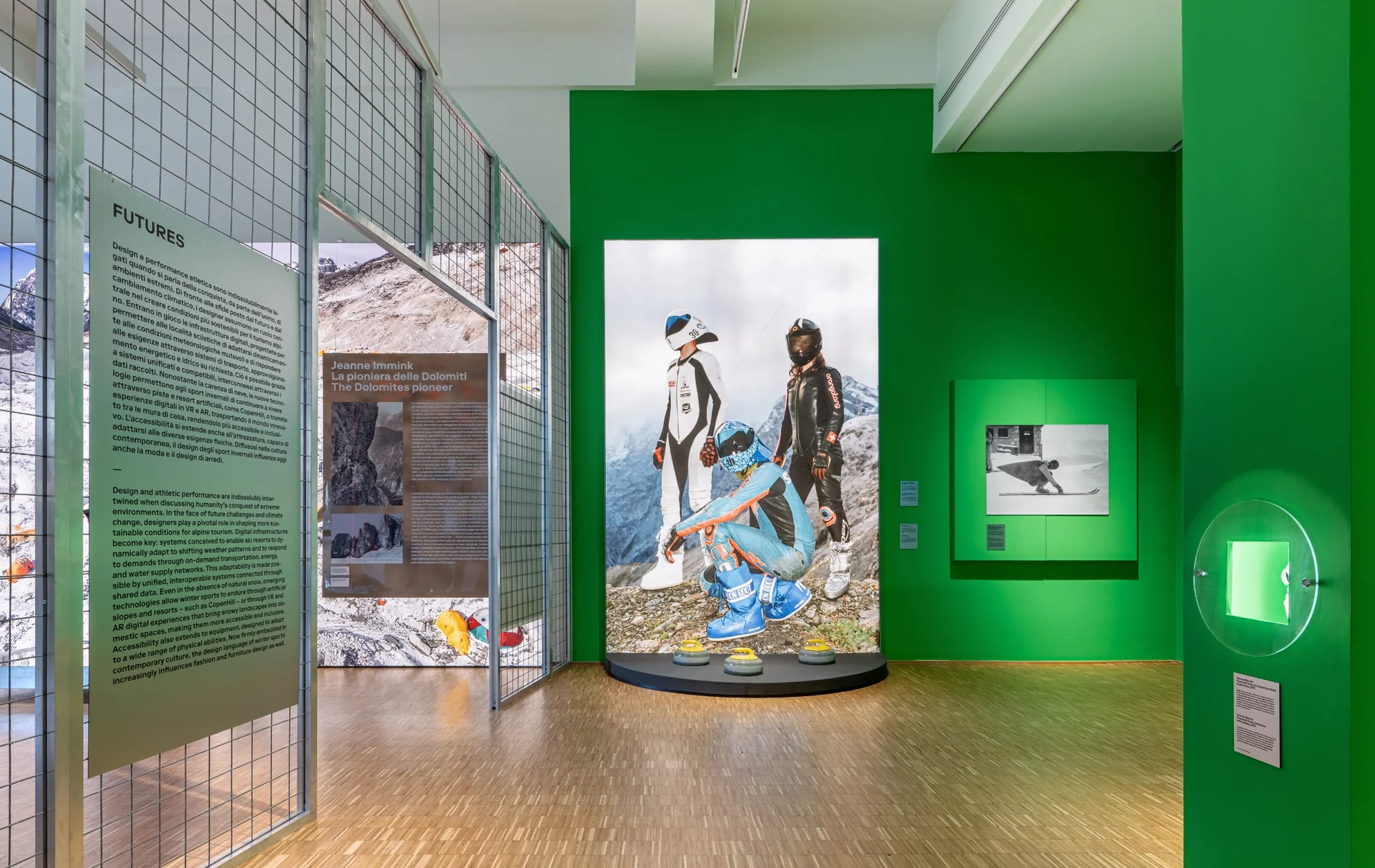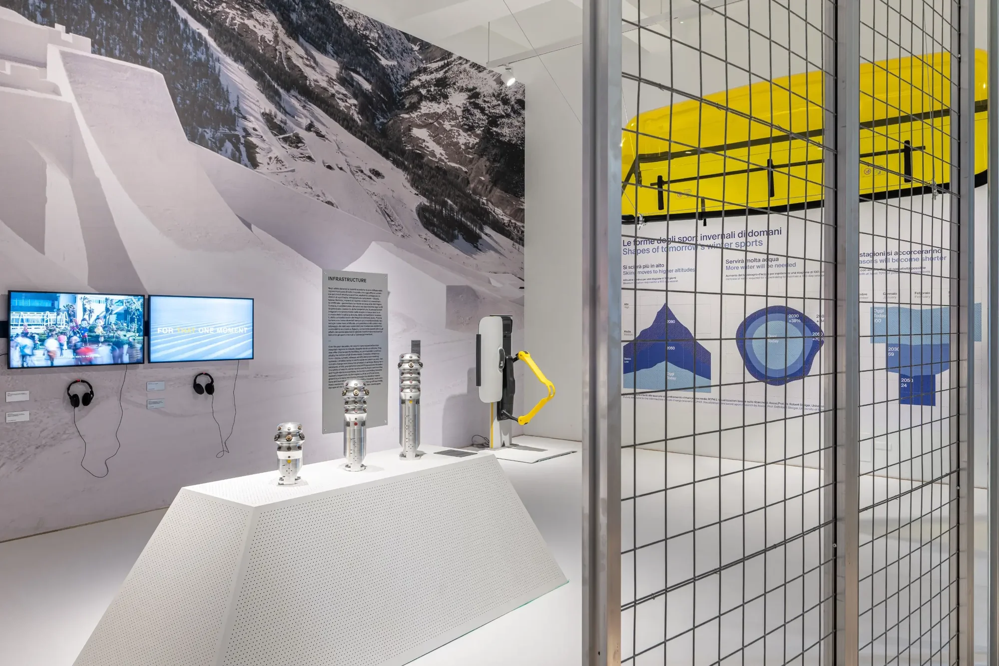 Zwischen 28. Januar und 29. März führt die Schau „White Out. The Future of Winter Sports” in thematisch gestalteten Bereichen sportliche Disziplinen, Gestaltungsprojekte, Ausrüstung, Technologien und vor allem Sportarchitektur zusammen, um sichtbar zu machen, wie Design und Innovation auf veränderte Umweltbedingungen reagieren. Im Fokus stehen Wintersportarten, wintertouristische Konzepte, Wettkampfformate sowie die Gestaltung von Sportstätten, Ausrüstung und Uniformen.