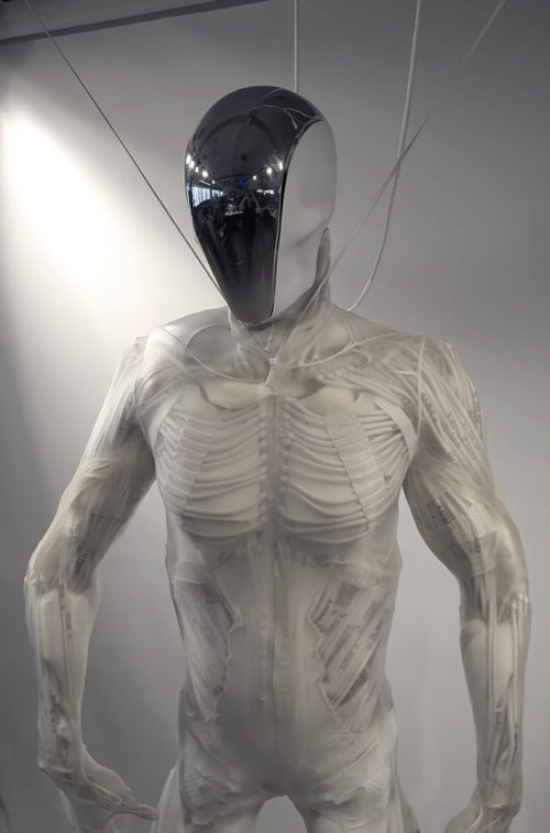Beneath the white, elastic film – or should we say ‘skin’? – lies a system of 1,000 artificial muscles, known as myofibres, which are hydraulically activated, i.e. using water pressure. This distinguishes the concept from most other humanoid robots, which typically rely on electric motors. It is also unique in that these muscles are attached to a skeletal system that replicates human anatomy, with all 206 of its elements. The robot features a torso, pelvis and spine, as well as delicate ‘finger bones’ in its slender hands. Four depth cameras behind the head visor, along with inertia and pressure sensors, report real-time data to microcontrollers in the spine. These microcontrollers then control the high-pressure pump and valves. The aim is to achieve a high degree of mobility and muscle strength using minimal energy. The Clone Alpha, which is already available to pre-order, will eventually be able to walk upright, although it remains to be seen whether it will move as smoothly as the animations on the website suggest. Unfortunately, Clone Robotics did not reply to repeated requests for information.