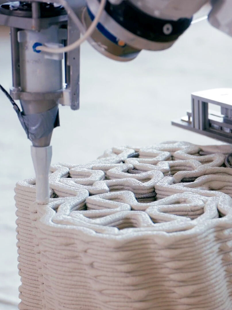 While early methods such as stereolithography have been used in industry since the 1980s, 3D printing developed much later. Essentially, 3D printing falls into the category of ‘additive manufacturing’, where components or entire buildings are built up on site, layer by layer, from a viscous material. Depending on the method and application, this material can be based on a range of substances – including concrete, sand, plastic, metal or recycled materials such as waste paper.