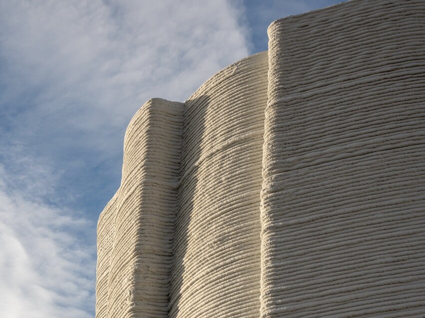 The data centre building for Heidelberg iT Management GmbH & Co. KG is one of the largest 3D printed buildings in Europe: the shell of the approximately 50 metre long, single-storey building was completed in just 170 hours. Thanks to digital control and on-site fabrication, many traditional steps such as formwork or intensive manual labour were eliminated. At the same time, less material was used because the concrete was precisely extruded layer by layer. The project demonstrates the potential of 3D printing for functional, medium-sized buildings with individual design languages – but also highlights current challenges: the undulating structure of the building placed high demands on the roof design, certified windows for the new type of printed concrete were not available, and full completion still took more than ten months, despite the rapid construction of the shell. In addition, the large size of current printers makes urban applications difficult.