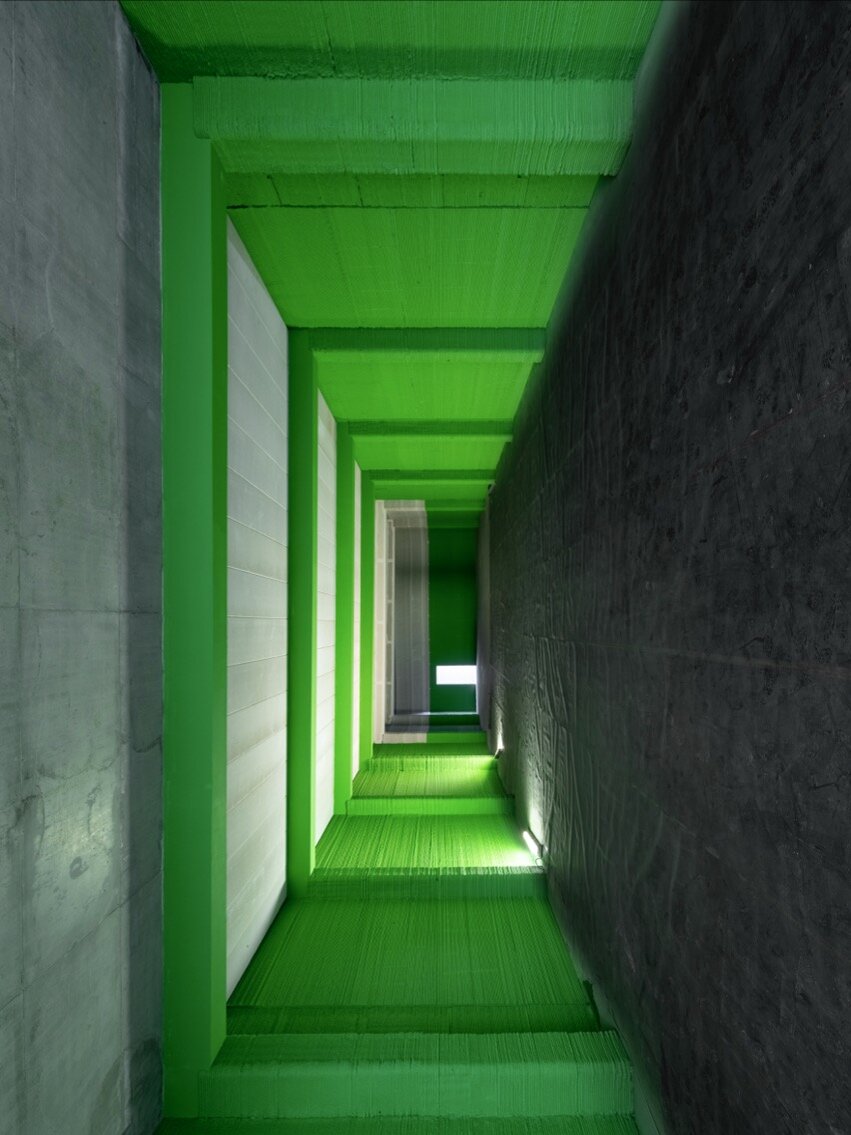 Multi-storey buildings have long been considered a major challenge for 3D printing – particularly because it hasn’t been possible to seamlessly integrate reinforcement into the printing process. The White Tower of Mulegns offers a pioneering solution: as the concrete is printed layer by layer, a second robot simultaneously places the horizontal reinforcement. The vertical reinforcement is then inserted and filled into hollow channels. For the first time, it is possible to build load-bearing, multi-storey structures using 3D-printed reinforced concrete – but using conventional prefabrication methods. The columns consist of multiple elements: the base and capital are precast concrete, the shaft is the 3D-printed section into which vertical reinforcements are inserted and then grouted.