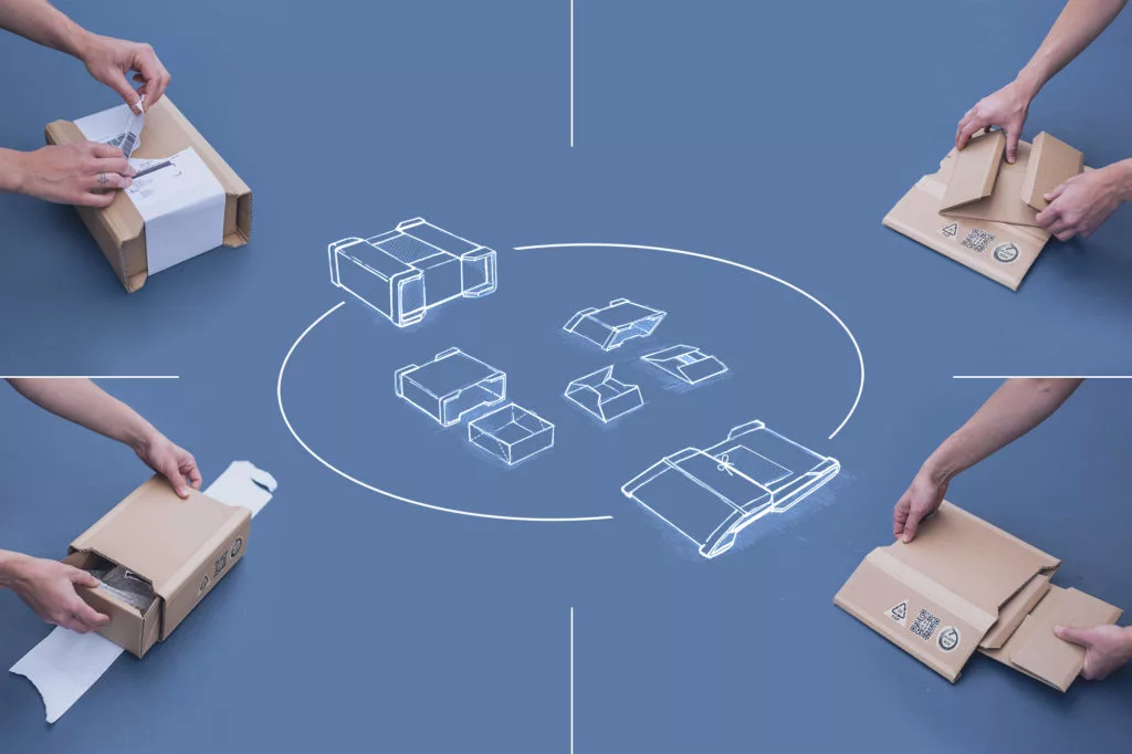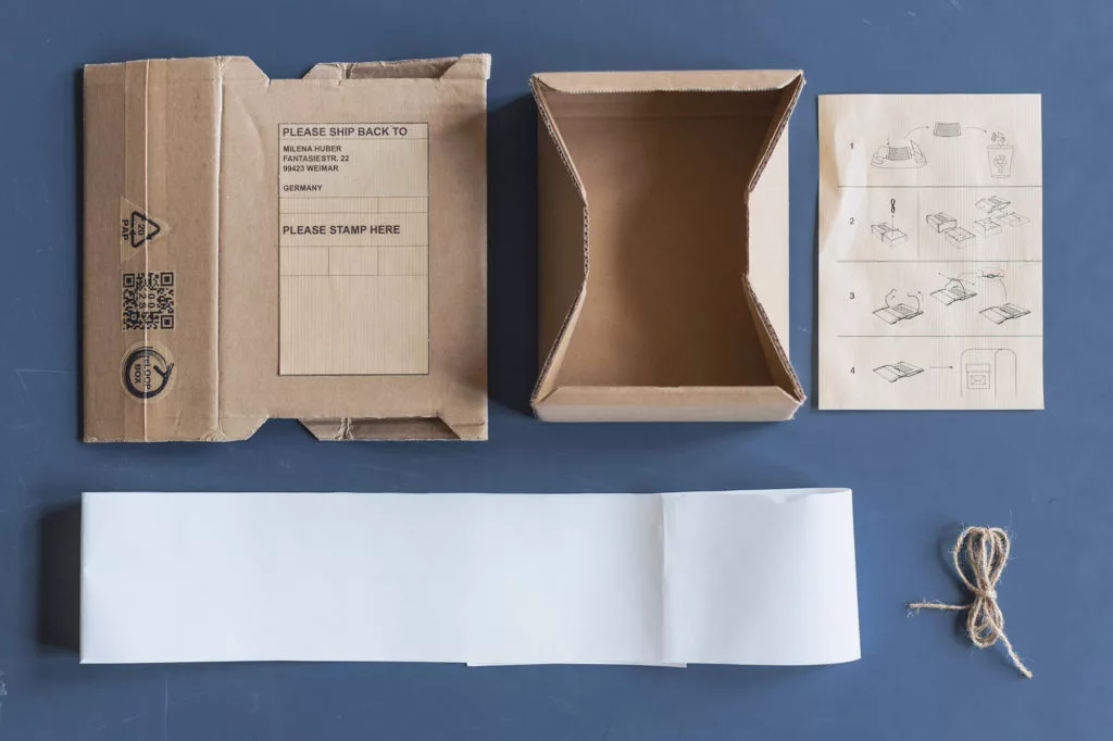 In many companies and private households it has long been common practice to store used shipping boxes and padded envelopes – for the next shipment. This saves money and packaging material. Milena Huber converted this practice into a product concept for her Master’s thesis. “reLoopbox” is the name of the alternative reusable shipping packaging that she developed as a final project at Bauhaus University Weimar. The “reLoopbox” consists of three parts: a sleeve and a sliding box made of stable corrugated cardboard and a band made of paper. The two-part cardboard slipcase can be folded and stored accordingly to save space until the next time it is needed. The banderole in turn fulfils several functions: It offers space for the address field, franking, logos and other individualised graphic elements. It guarantees the sealing of the box during dispatch and protects sensitive data. As a standardised product, “reLoopbox” could also be used on a larger scale by companies and retailers. And the more of the boxes in circulation, the more naturally they would be kept and used again and again.