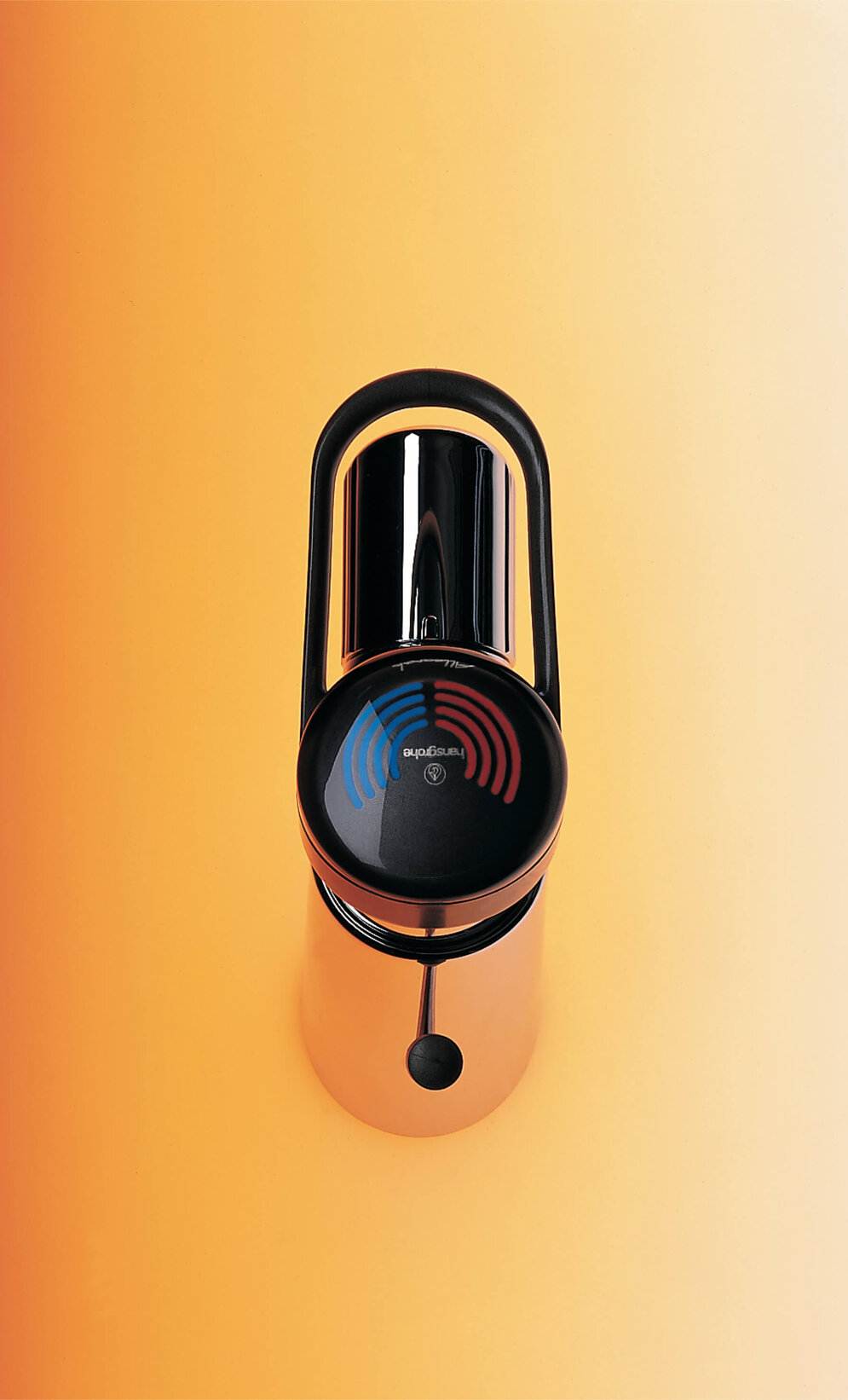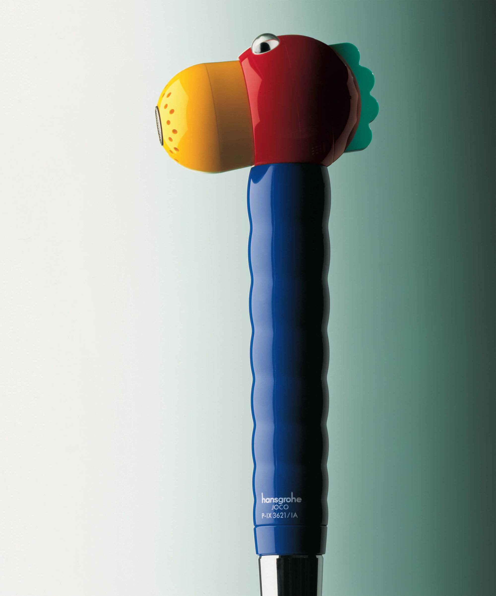 Whilst the Phoenix design studio had kept the forms of the Arco range strictly minimalist, the designers showed their playful side with the Joco children’s hand shower. Specially tailored to children’s needs, the four-coloured hand shower takes the form of an animal’s head: a yellow nose as the spout, a red head with googly eyes and a green crest, and a blue neck as the handle. The nose delivers either a strong or a gentle stream of water. The design is a perennial favourite: known as the “Jocolino”, the design can still be found today, with only minor changes, in Hansgrohe’s range.
